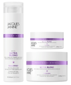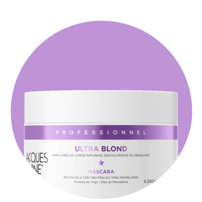 A linha Ultra Blond da Jacques Janine foi desenvolvida para loiros platinados e acinzentados, mantendo o tom frio e luminoso. Neutraliza o amarelado e confere brilho intenso e sedosidade aos fios descoloridos.