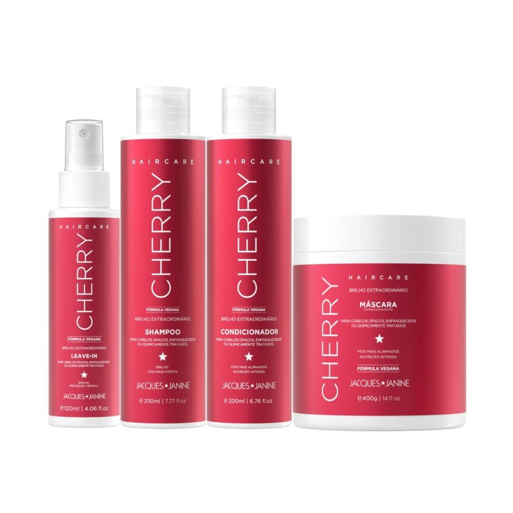 A linha Cherry Haircare Jacques Janine foi desenvolvida para devolver o brilho e a vitalidade dos cabelos opacos, enfraquecidos ou quimicamente tratados. Com uma fórmula vegana e ingredientes que proporcionam nutrição intensa, ela age desde a limpeza até o tratamento profundo dos fios, deixando-os mais fortes, macios e alinhados. O uso contínuo garante um brilho extraordinário, além de proteger contra o ressecamento e controlar o frizz. Ideal para quem busca cabelos saudáveis, sedosos e com aparência de salão todos os dias.