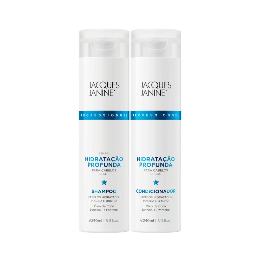 A linha Hidratação Profunda Jacques Janine foi desenvolvida para recuperar a maciez e vitalidade dos fios ressecados, proporcionando uma hidratação intensa e duradoura desde a primeira aplicação. Sua fórmula rica em óleos e ativos emolientes penetra profundamente na fibra capilar, devolvendo nutrição, brilho e movimento natural aos cabelos.