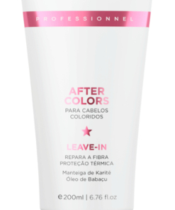 O LEAVE-IN AFTER COLORS DESEMBARAÇA, ELIMINA O FRIZZ, FINALIZA O PENTEADO E PROTEGE OS CABELOS SUBMETIDOS A COLORAÇÕES OU MECHAS, REPARANDO SUA FIBRA E PRESERVANDO A COR DOS FIOS. SUA FÓRMULA POSSUI MANTEIGA DE KARITÉ E DE MURUMURU, RESULTANDO EM CABELOS MAIS MACIOS E HIDRATADOS.